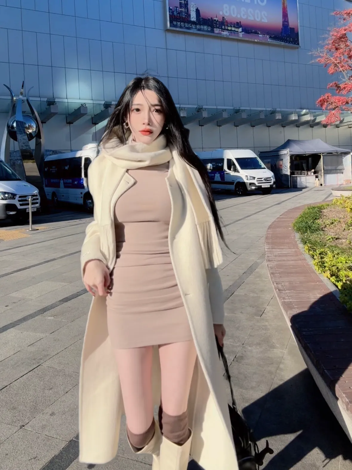 100%羊毛-手工圍巾羊毛長版大衣
