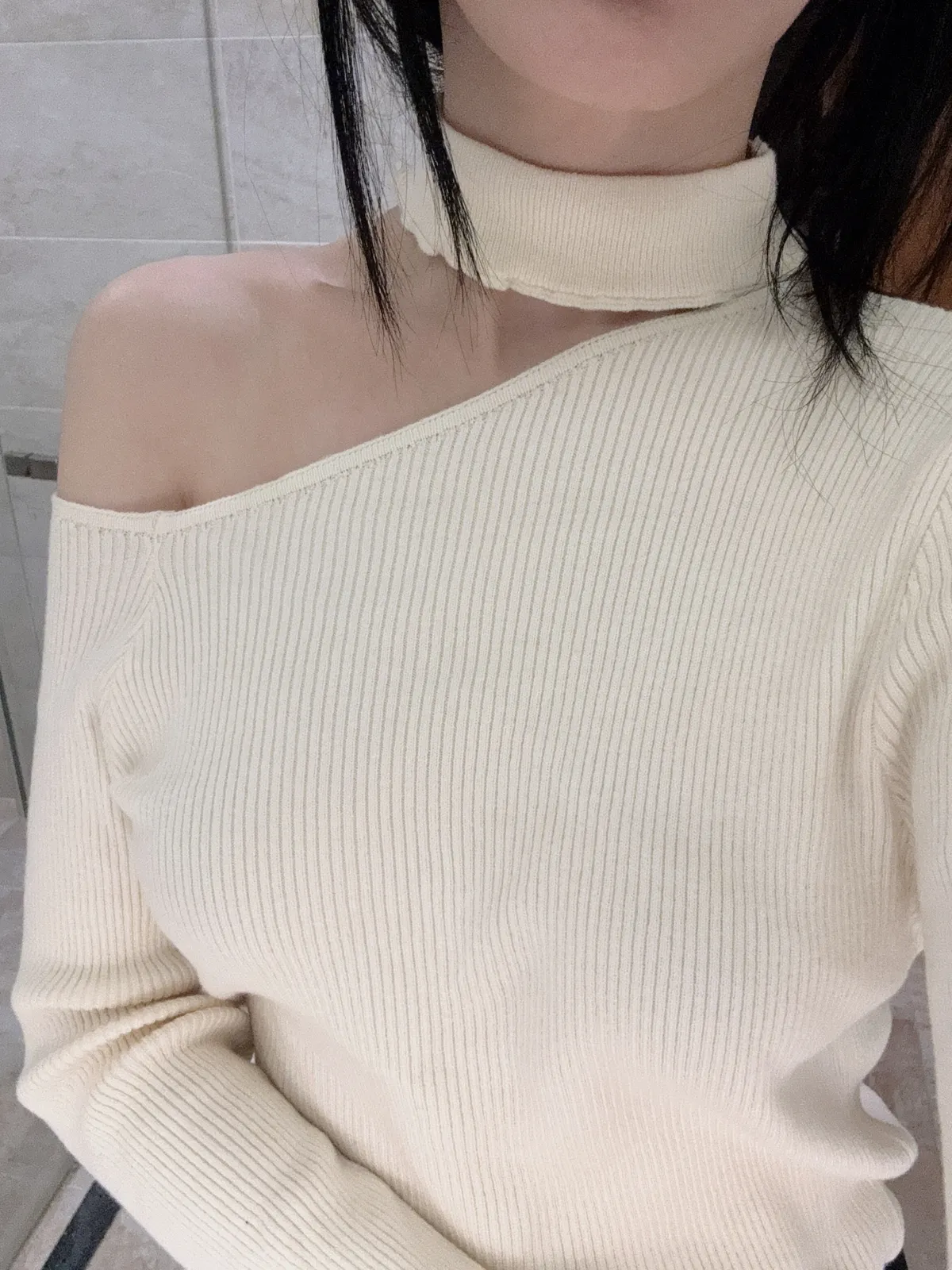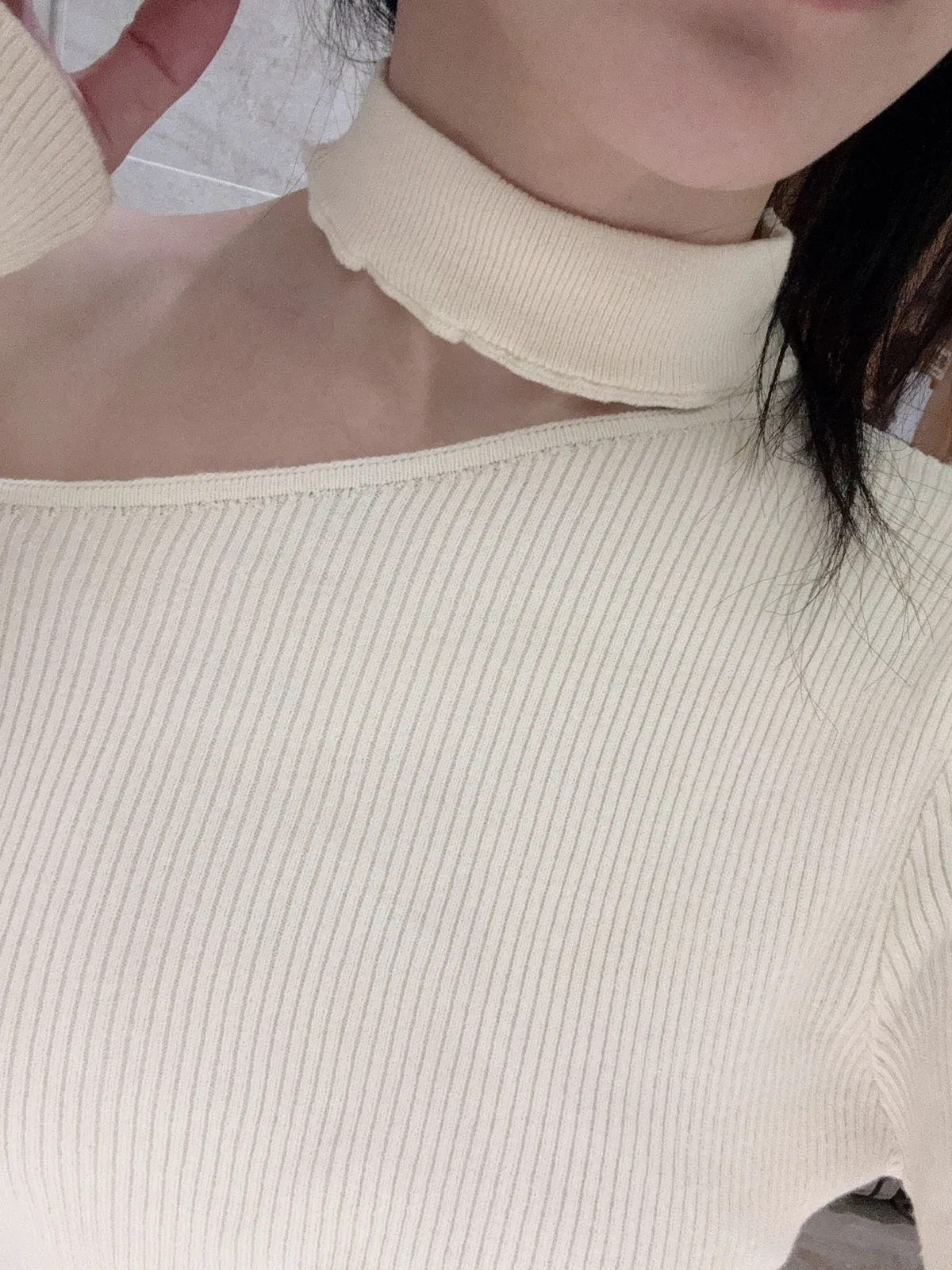 心動記號-木耳領坑條針織上衣