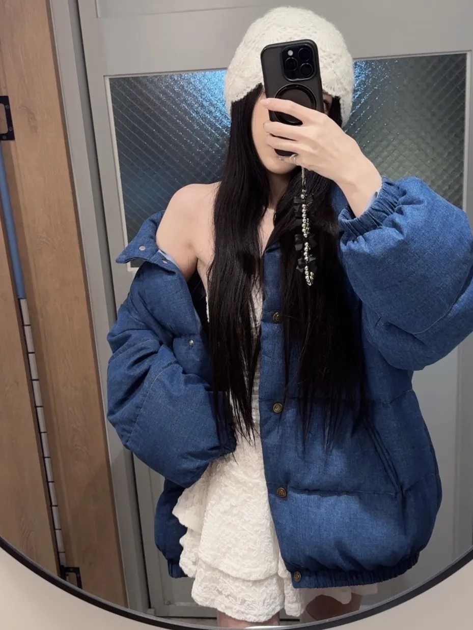 Jennie同款-雲朵輕量牛仔羽絨外套