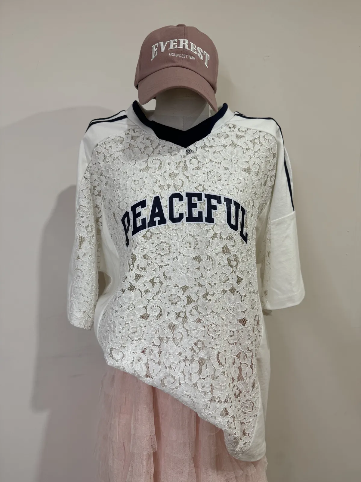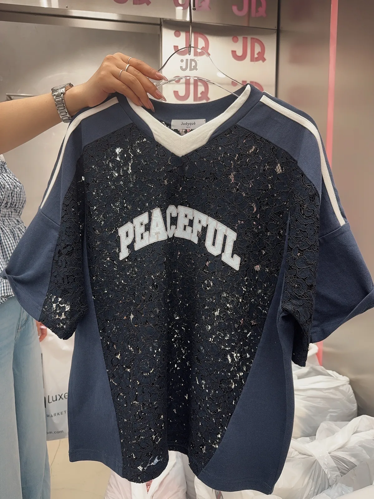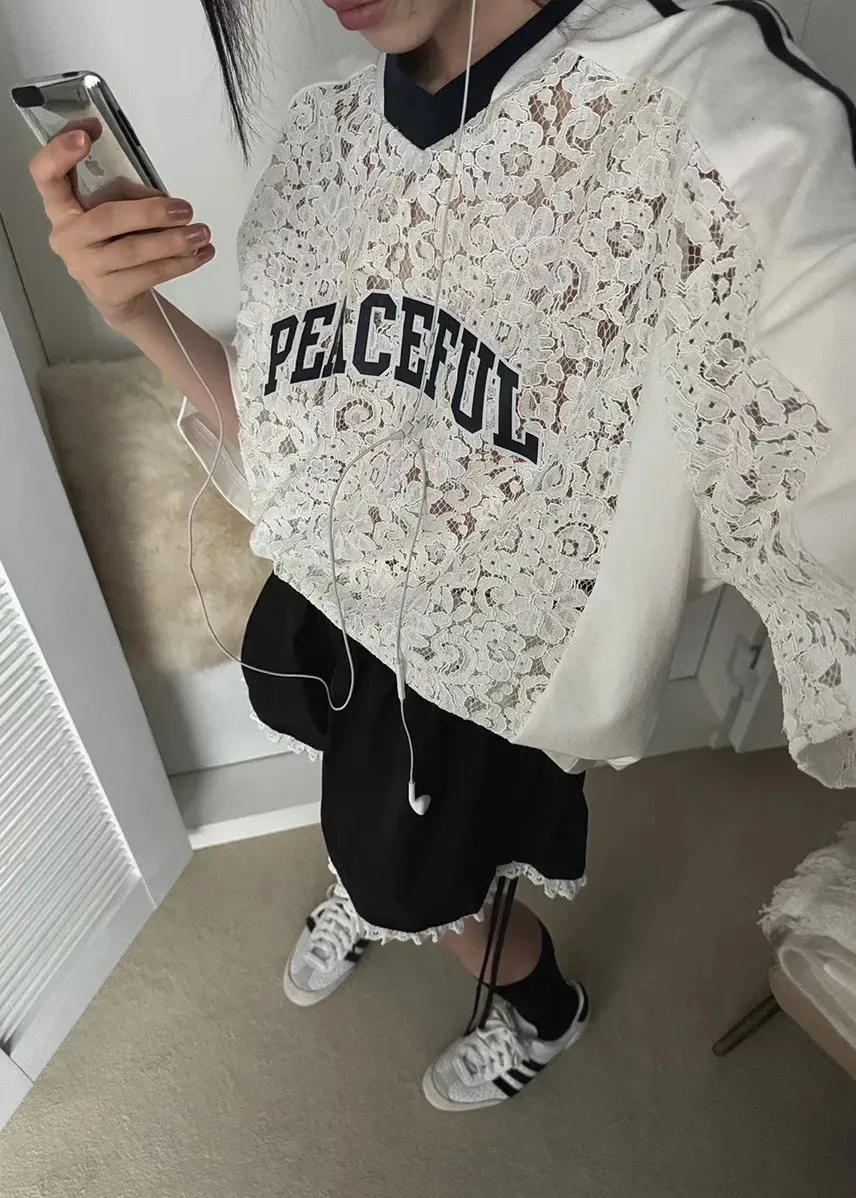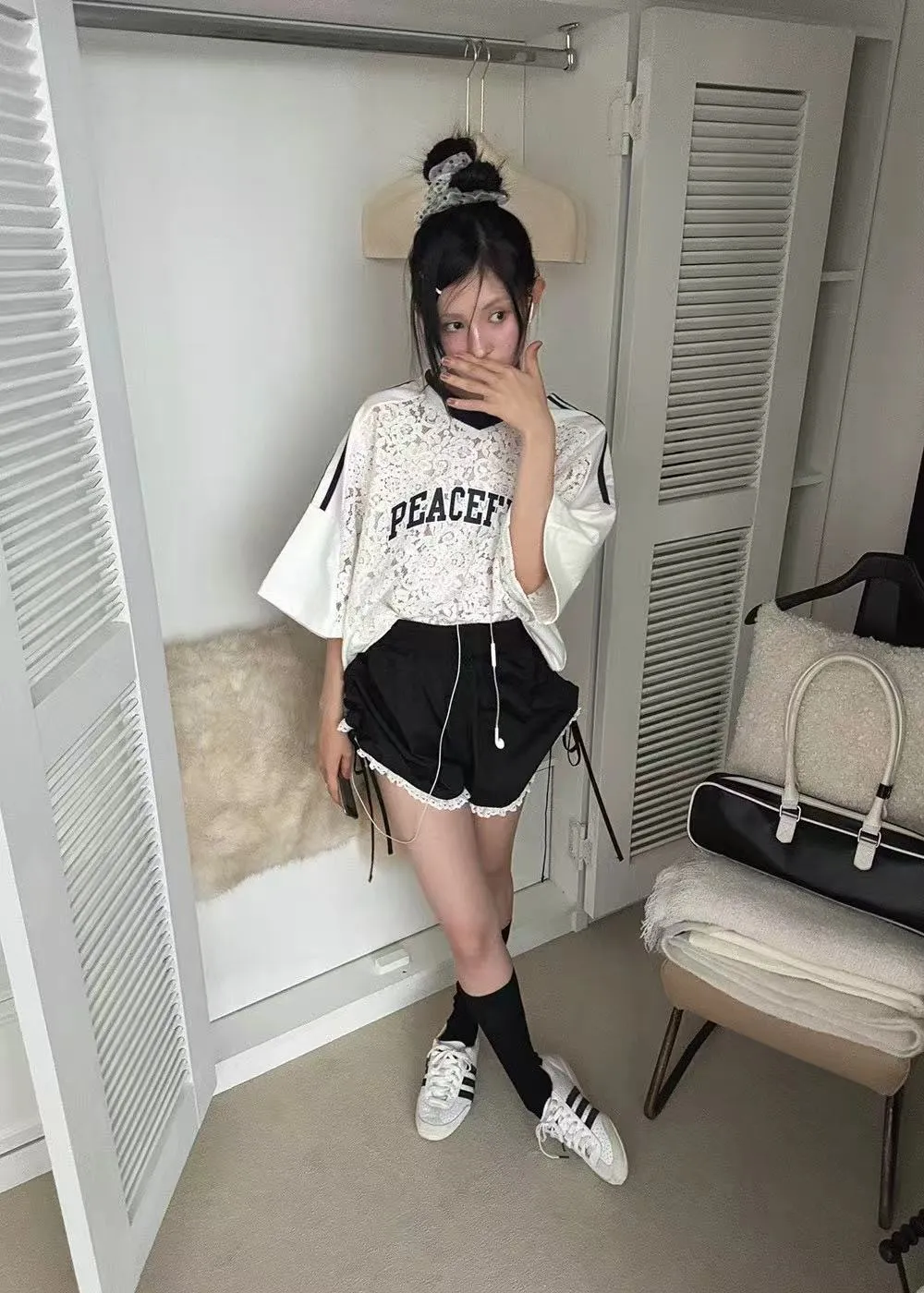 無違和甜酷混搭感-挺版蕾絲拼接球衣