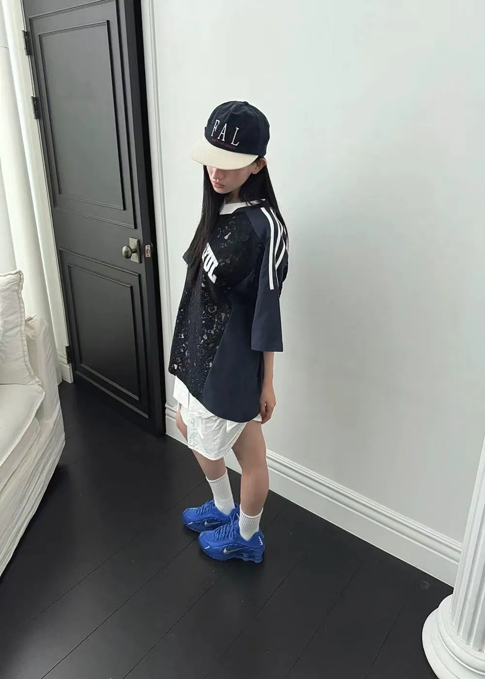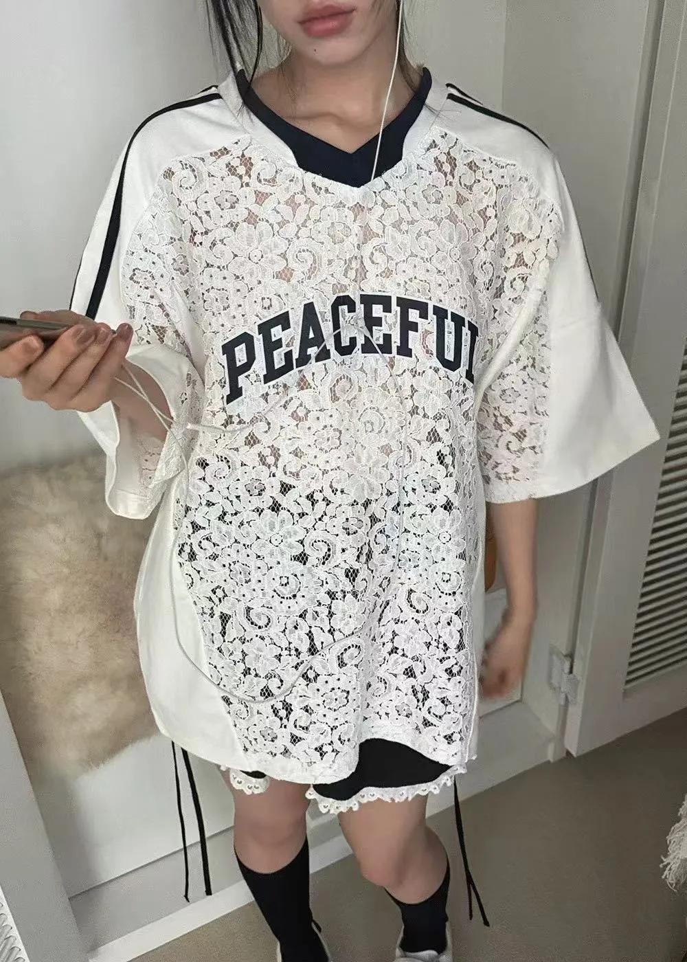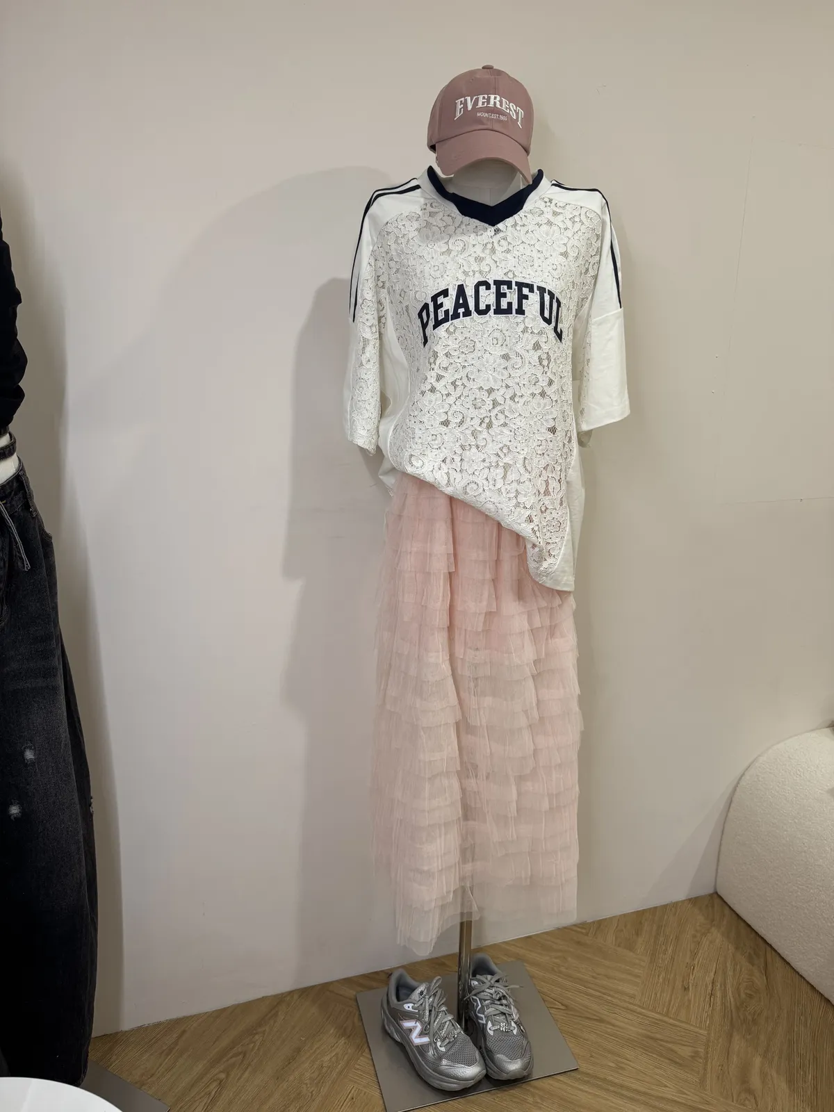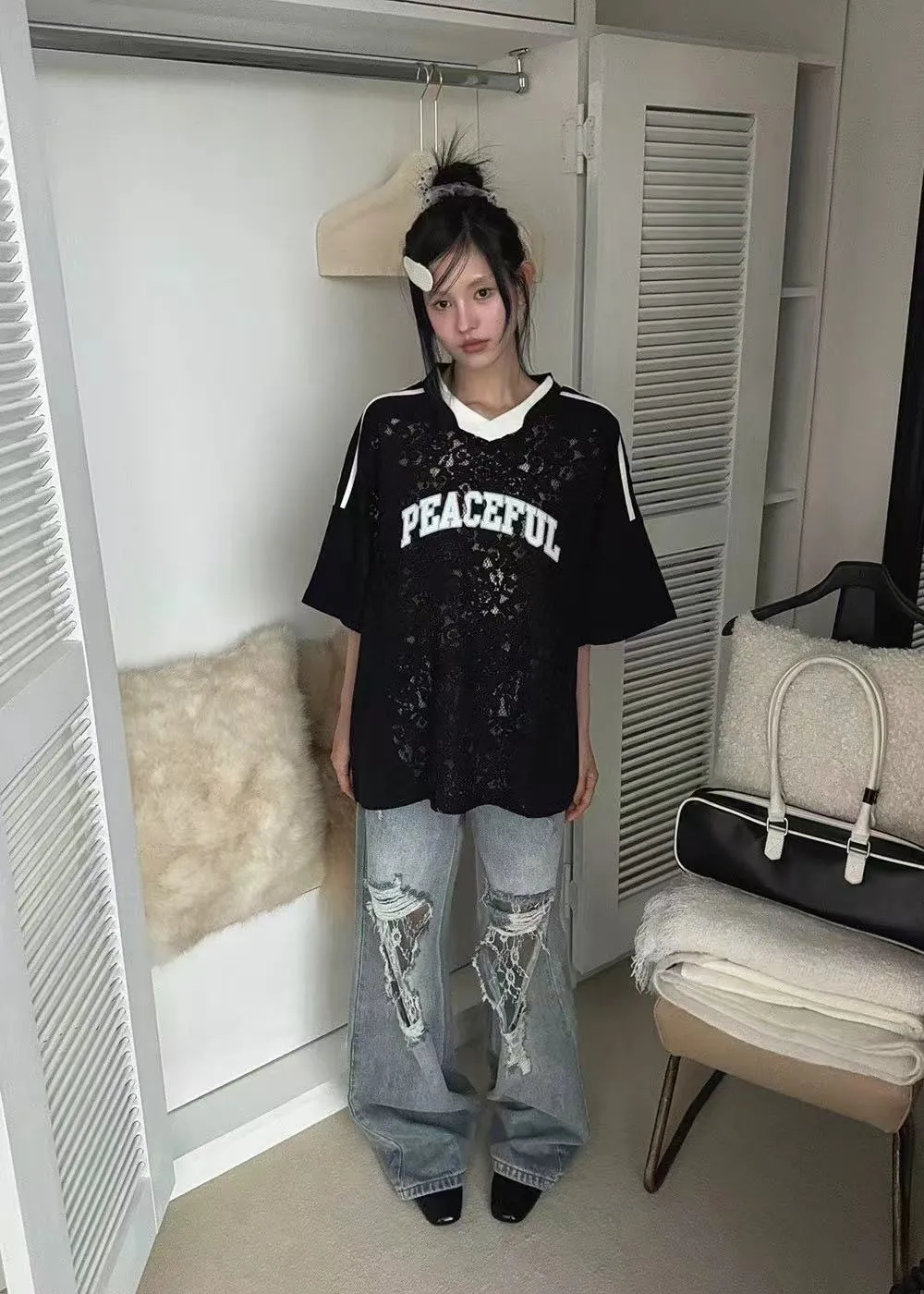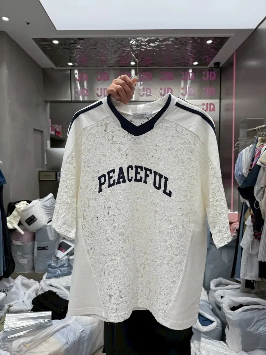 無違和甜酷混搭感-挺版蕾絲拼接球衣