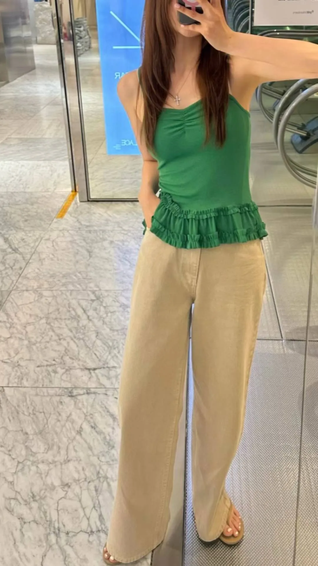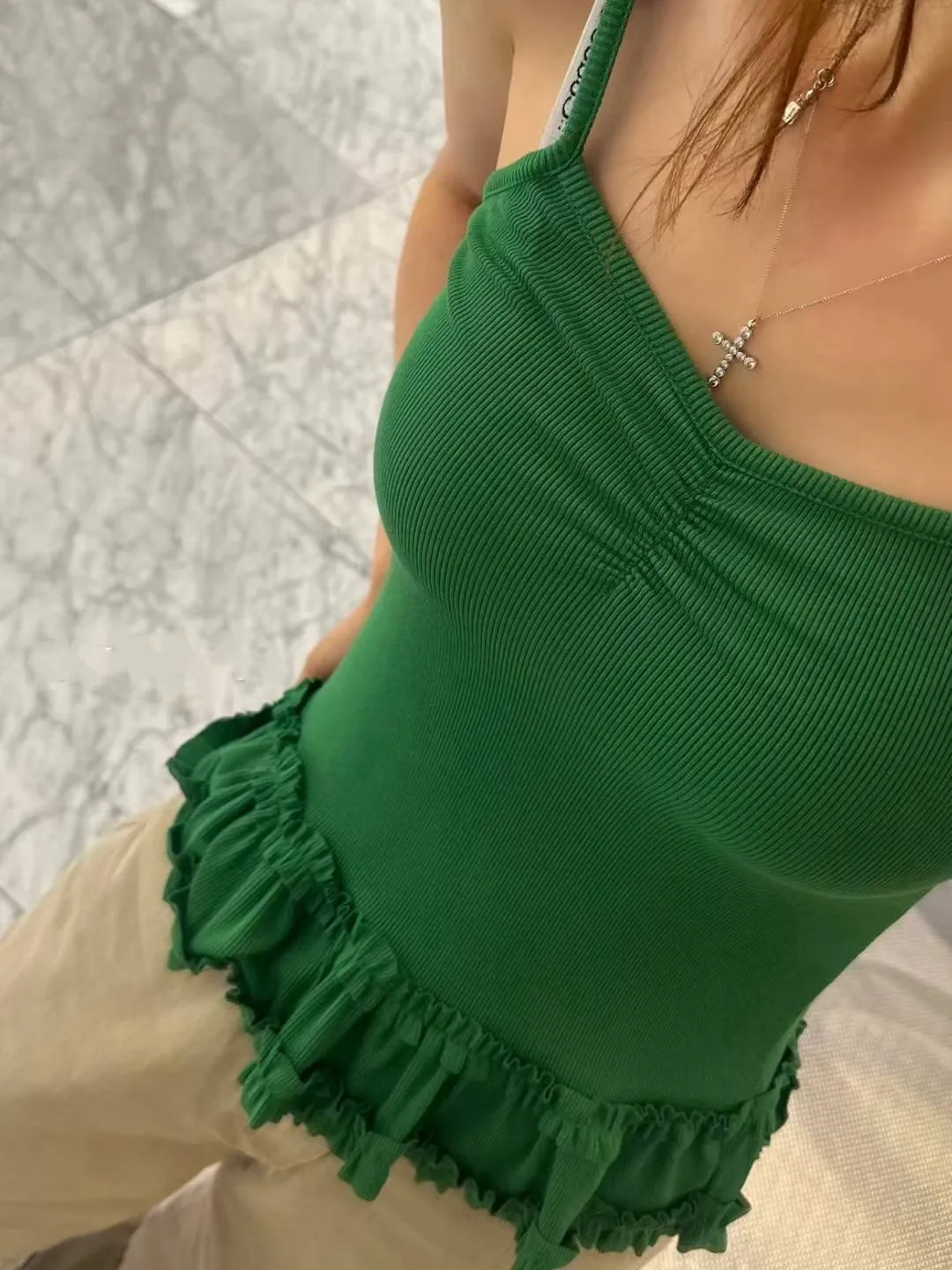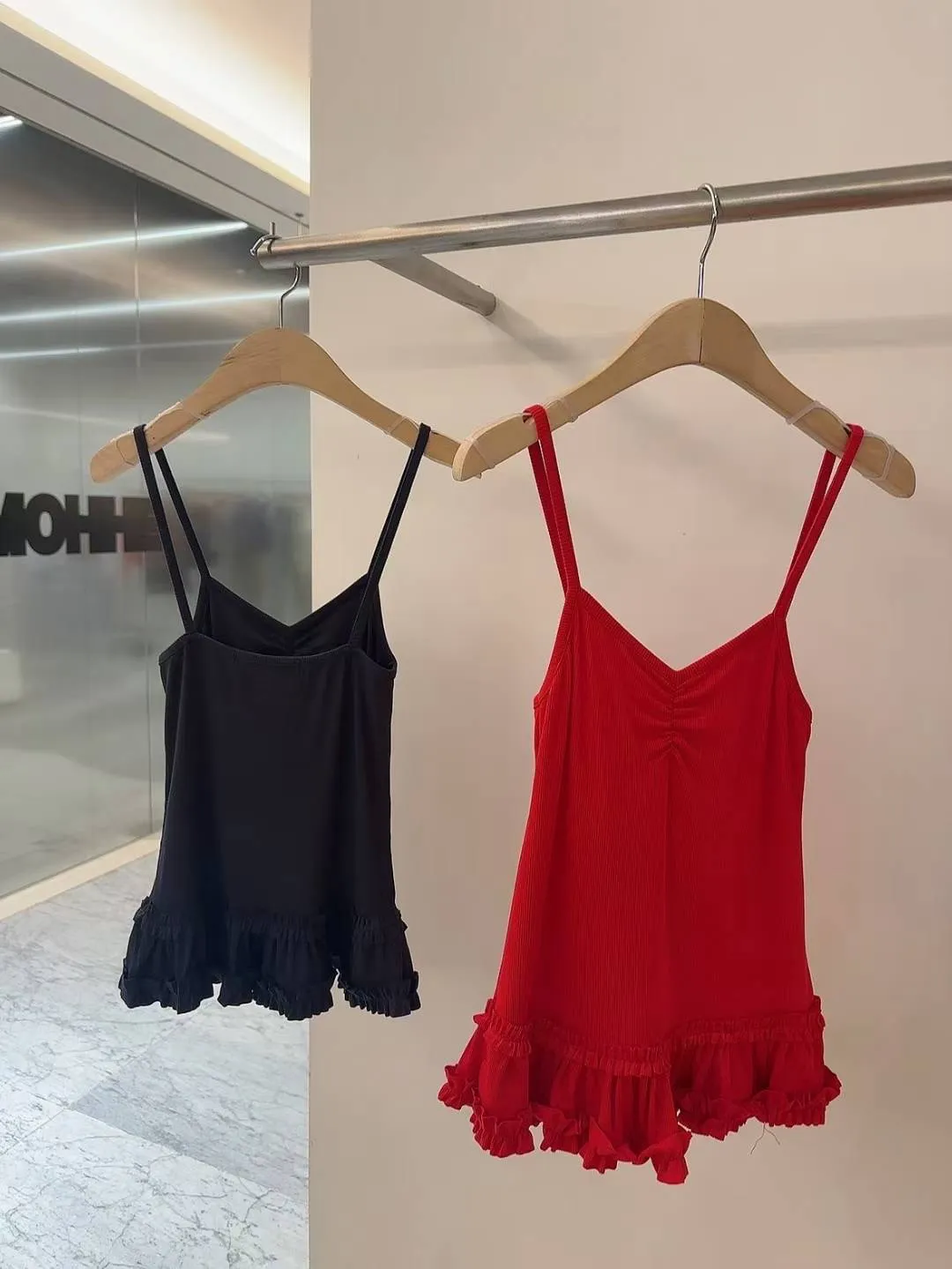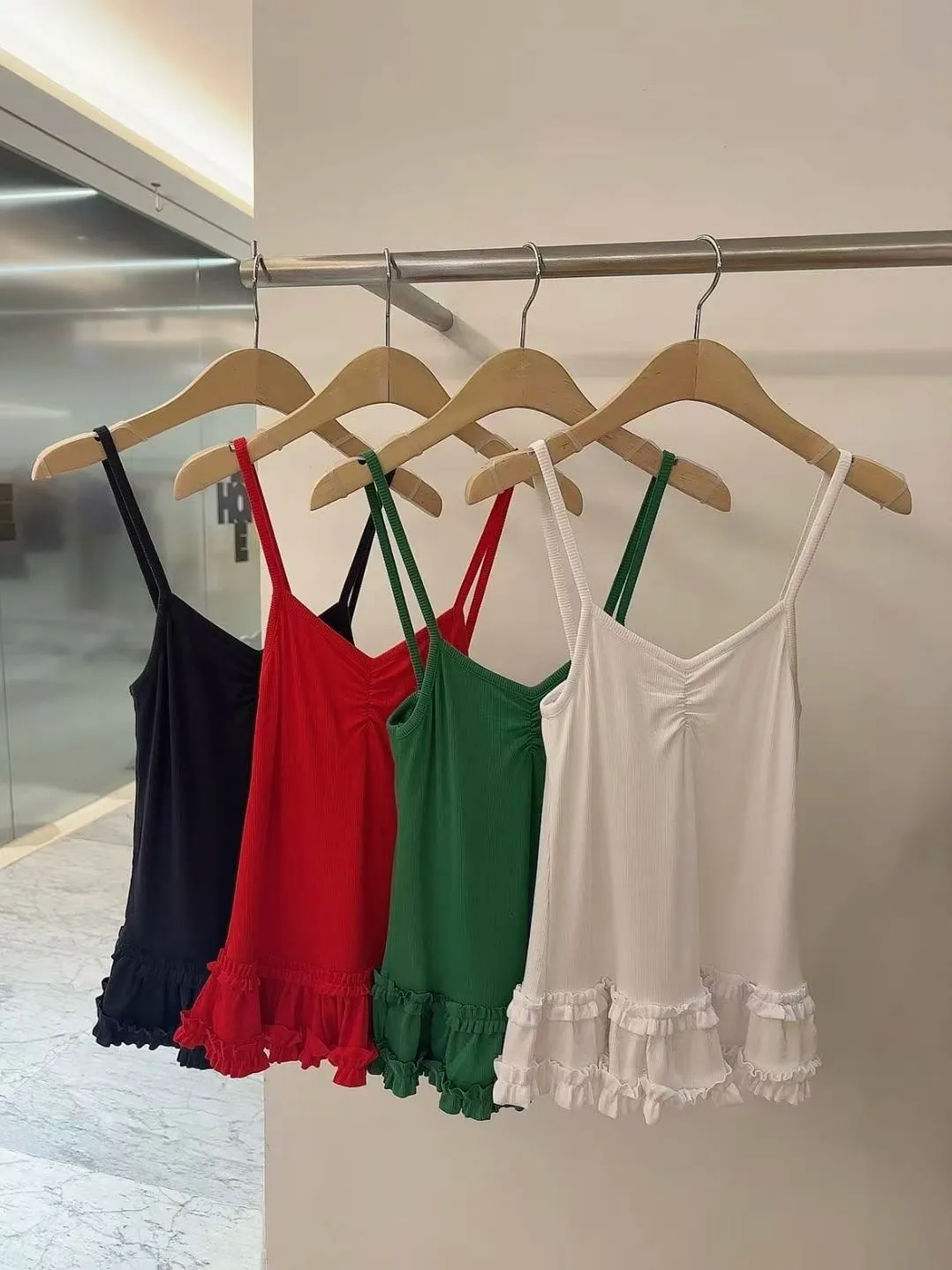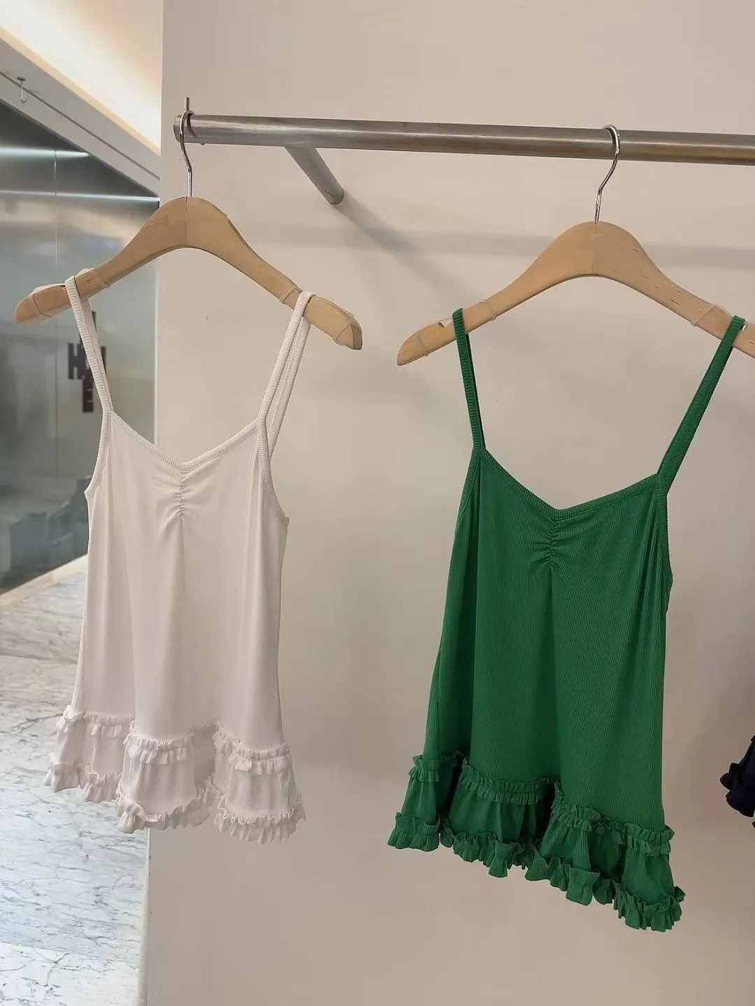 夏日氣泡水-彈力羅紋荷葉下擺背心